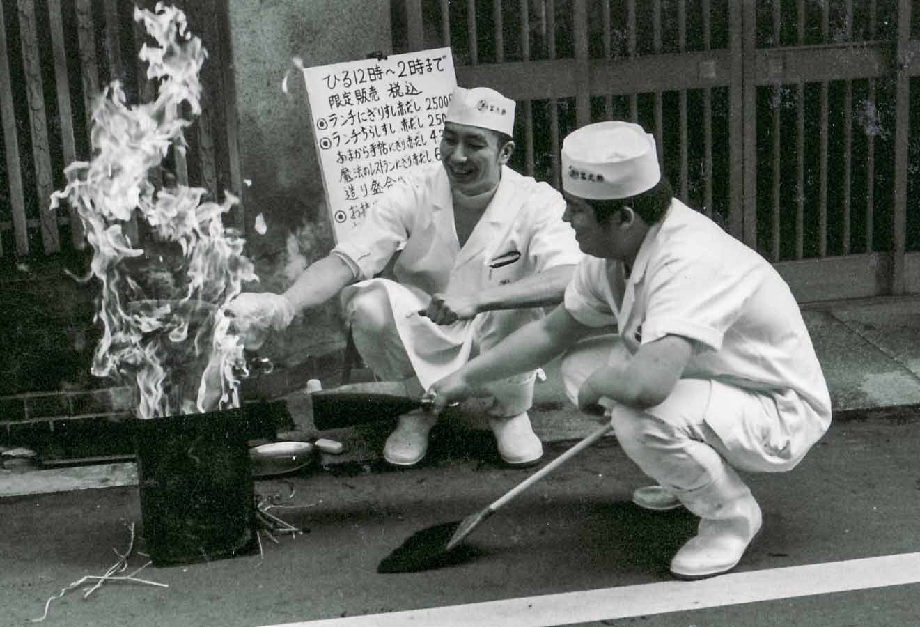 Chef's smoking a fish in Osaka